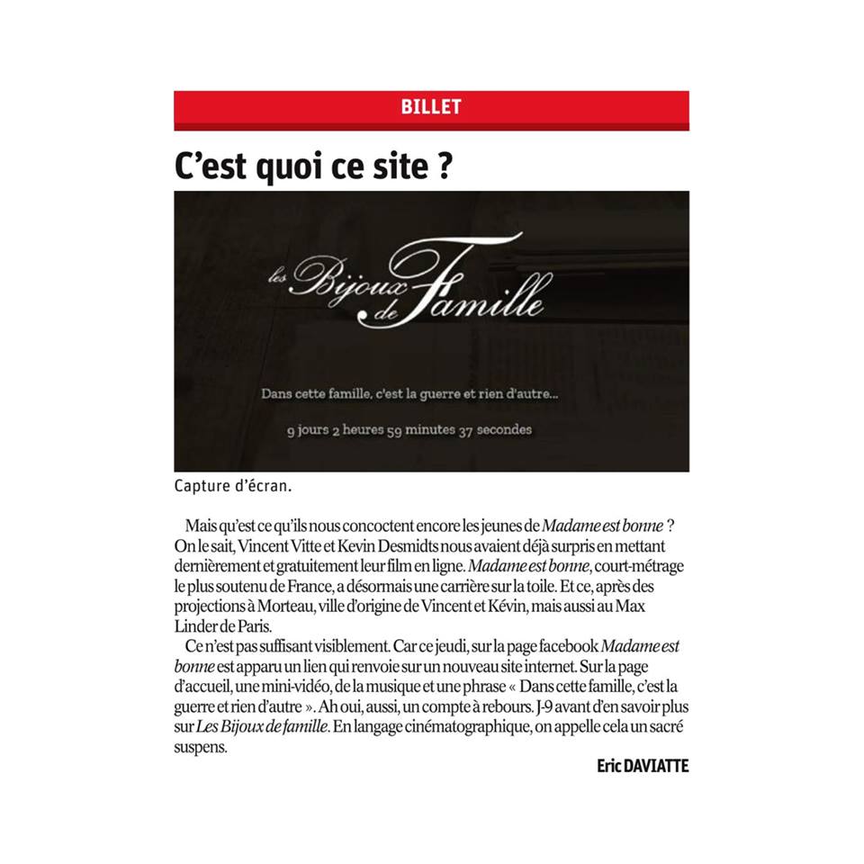 Près de 70 parutions dans les médias (presse écrite, radio, télévision, web) en France, Suisse et Belgique : retrouvez la revue de presse intégrale de « Madame est bonne ! » directement sur cette page.